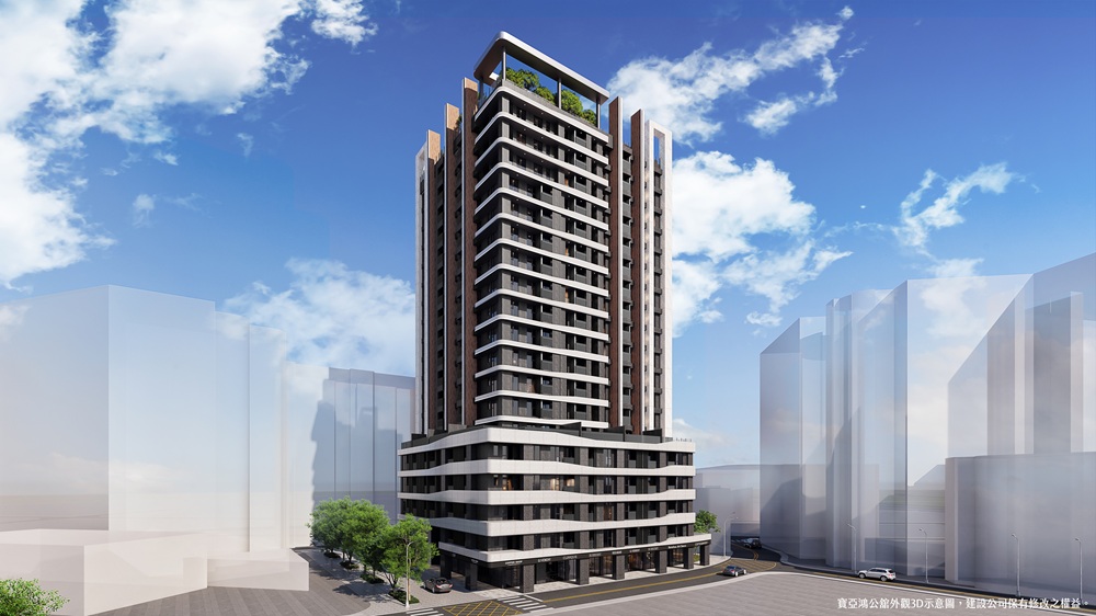 寶亞鴻公舘外觀3D示意圖,建設公司保有修改之權益。(圖/業者提供)