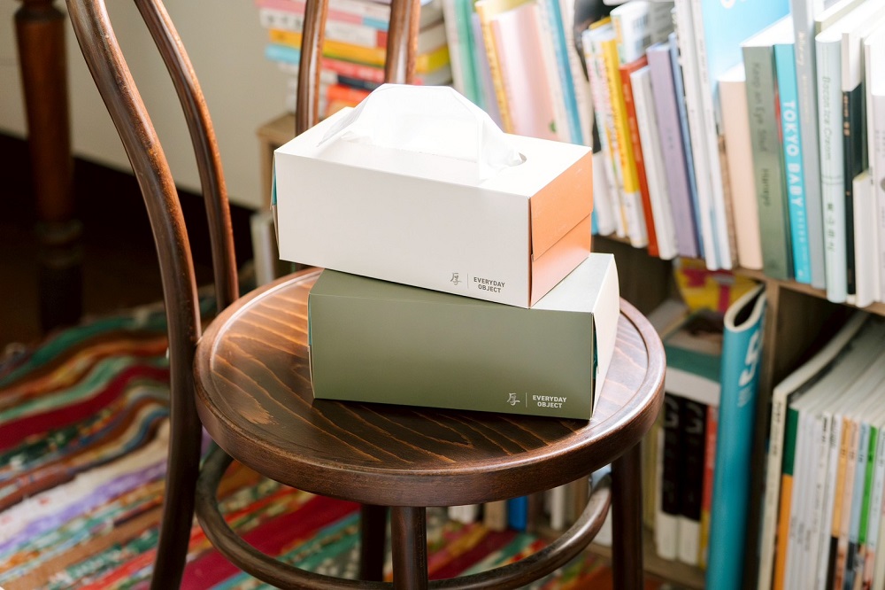 生活風格品牌 EVERYDAY OBJECT 與五月花「厚棒」合作推出聯名四層盒裝面紙,主打以簡約色塊設計融入居家環境,希望讓日常生活用品不必再隱藏於面紙套中,也能成為空間的一部分。
