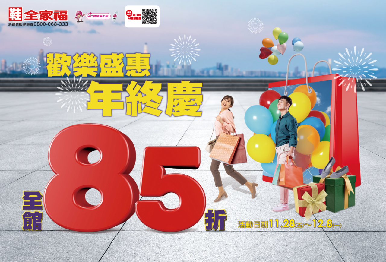 鞋全家福年度最後一檔85折只剩三天,活動只到12/8,85折期間會員獨享再95折,APP會員歡迎使用當月壽星優惠,最後倒數敬請舊雨新知一定要把握。