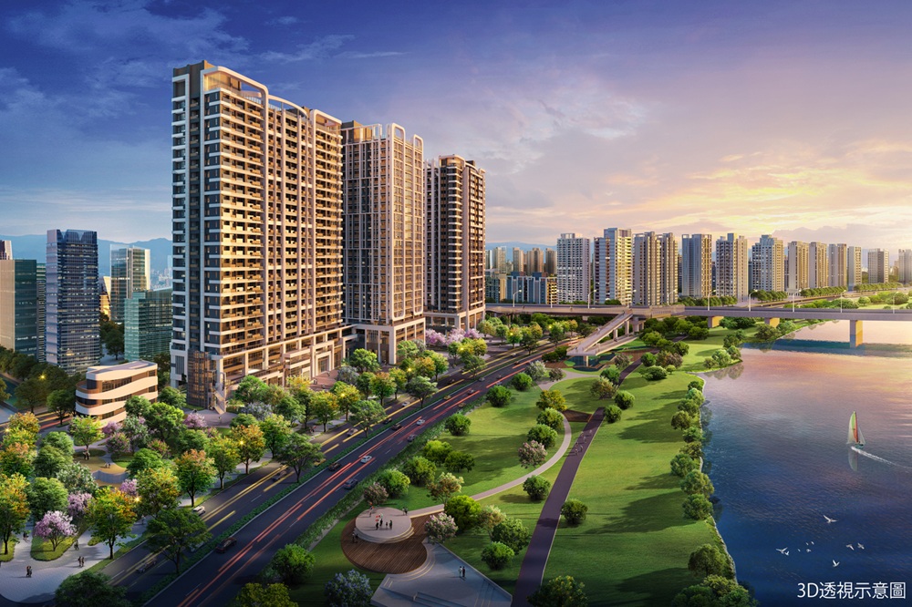 雙北水岸第一排稀有地段,「左岸明珠」吸引菁英首購、換屋族目光。(圖/業者提供)